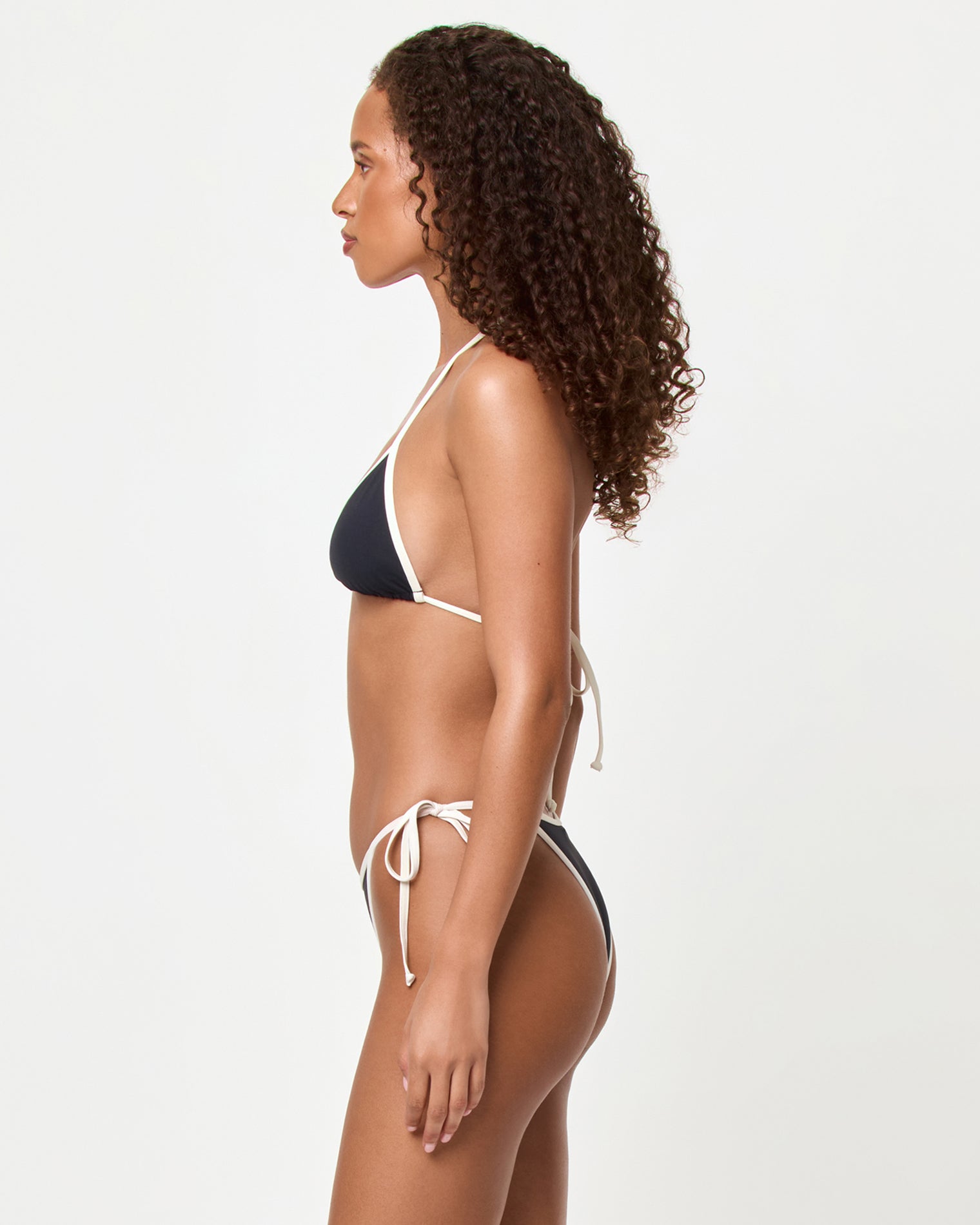 The Aspen Bikini Top is a minimalist triangle silhouette with adjustable ties at the neck and back, so you can tailor the fit to your body. It offers minimal coverage and support. The contrast trim adds the perfect touch of detail.