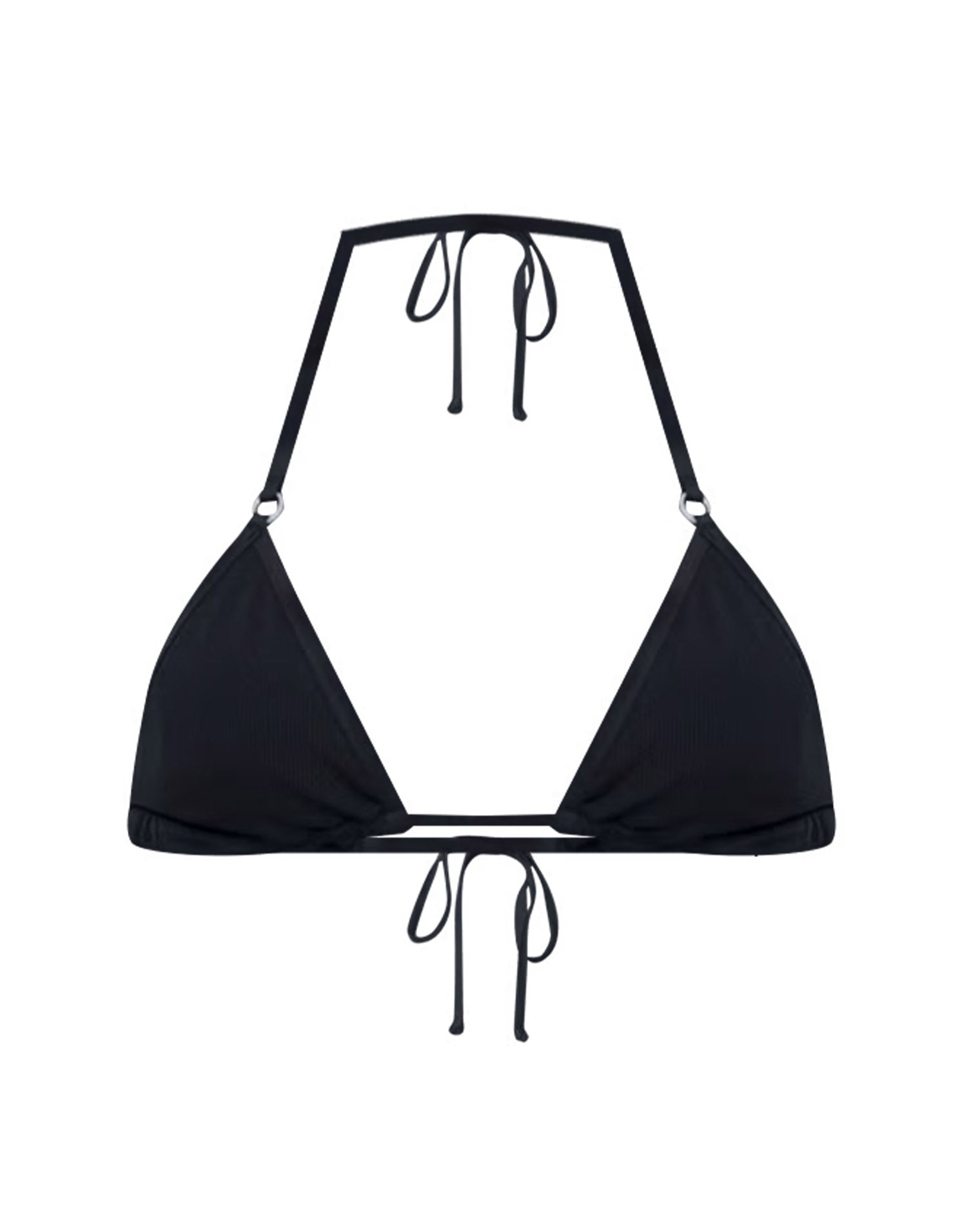 The Banning Bikini Top features a minimalist triangle silhouette with minimal support and coverage. Adjustable neck and back ties let you tailor the fit perfectly, while polished metal ring hardware adds a refined detail.